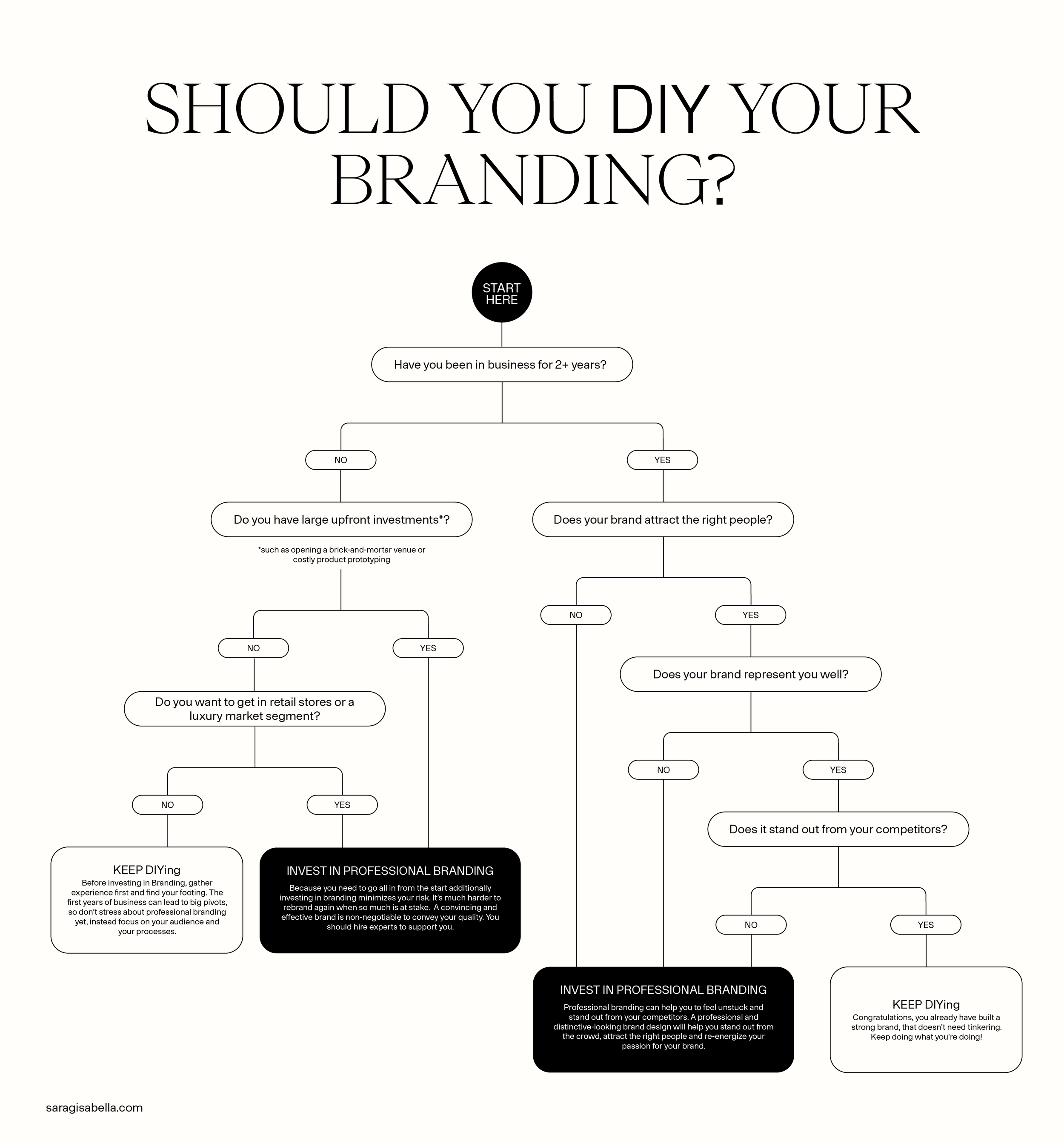 As I said initially, there is no one size fits all and ultimately the decision when to DIY or not to DIY your branding is an individual one. Money, time, and access also play a crucial role in the decision-making process. But I hope this breakdown gave you some guardrails for making the best decision for your business. If you’re still unsure about whether professional branding is right for you at this point in time, fill out my contact form and book your free consultation call with me.