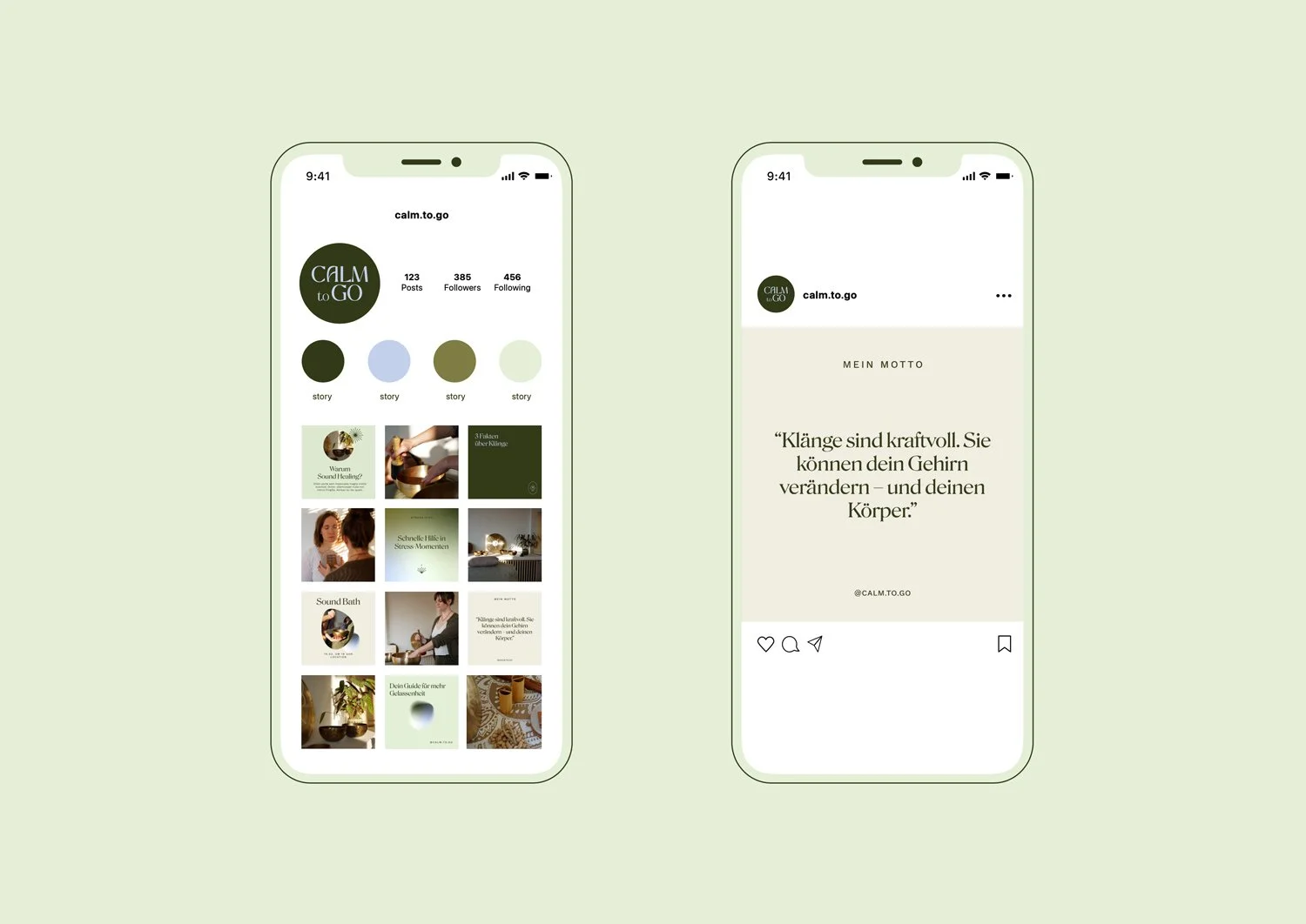 "Before working with Sara, I felt like I had ten different fonts and everything looked cobbled together. Plus, it was time-consuming, because I could never decide on a design. Now designing assets has become easier for me. I've become even clearer on what I stand for, and what I want to say and convey. Throughout the entire process, I felt understood and seen. Sara showed a lot of consideration for me, Calm to Go, and my mission and that is now also reflected in the brand design. My visual appearance on the website, social media, and also in print products now looks consistent, straightforward, and professional."