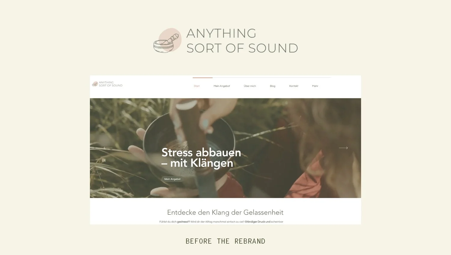 When Sonja approached me, she was feeling overwhelmed with making decisions for her brand. She couldn’t decide which fonts to use (“currently I use what feels like 10 different fonts because I can’t decide”), but also how to combine different aspects of her work in an offer that felt aligned with what she wanted to do. She decided to rename her business from “Anything Sort of Sound” to Calm to Go, reflecting her new path forward, where she discarded things that didn’t serve her well anymore. And from that renewed clarity, I designed a visual identity to match.