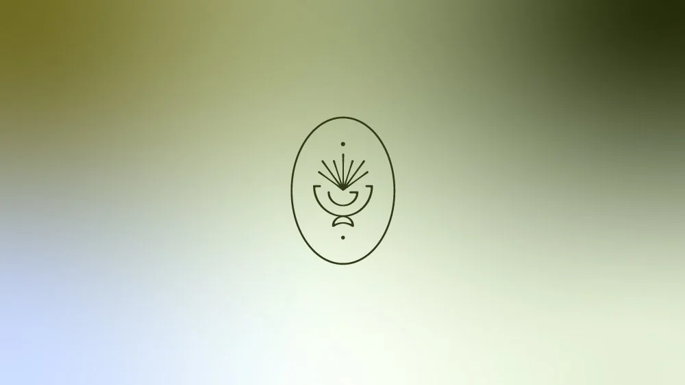 At first glance, the bespoke illustration is an abstract depiction of a singing bowl. A closer look reveals that the components of the bowl form the letters 'C' and 'G'. Rays of light grow out of the bowl, symbolizing the flow of sound. I used parts of the illustration to create additional decorative elements.