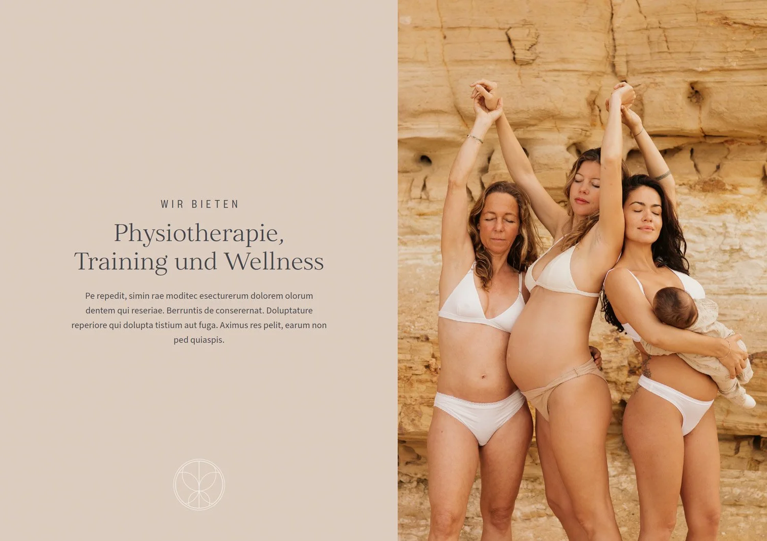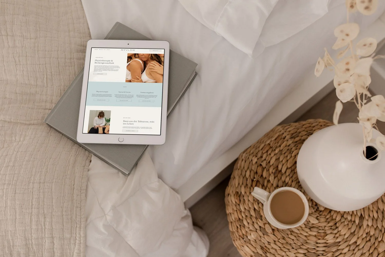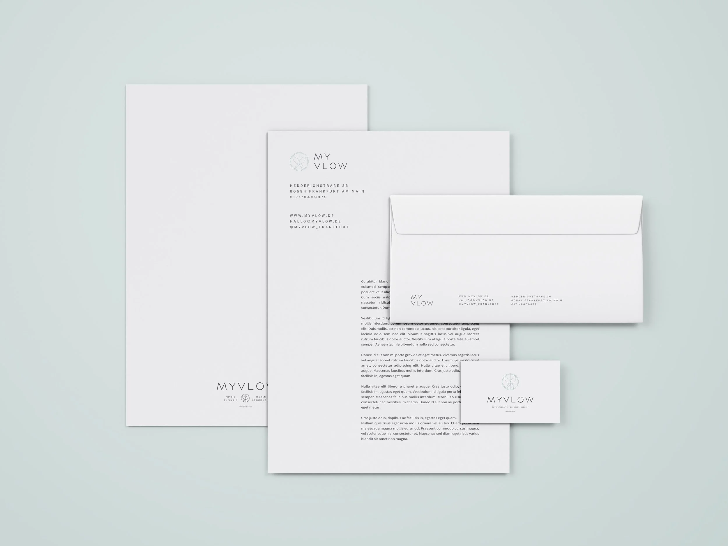 From custom stationery to the MyVlow slogan “Let’s talk about Beckenboden” (“let’s talk about the pelvic floor”) on the wall, the brand design has to be adaptable for many use cases. I always present my clients with a plethora of ideas for utilizing the design in the real world. Flyers, appointment cards, and other printed promotional materials are especially important for MyVlow to create a rich experience throughout.
